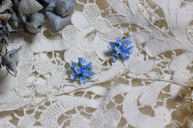 英国『DENTON』のボーンチャイナイヤリングです。青い勿忘草の花の可愛らしいデザインです。贈り物や自分へのご褒美としていかがでしょうか。 全高:22mm 全幅:22mm 厚さ:20mm 画像と実際の商品の色味が少々異なる場合がございます。アンティーク商品は、製造時や長い年月を経てついた傷や汚れなどがございます。それらをアンティークの味としてご理解の上、ご注文をお願いいたします。