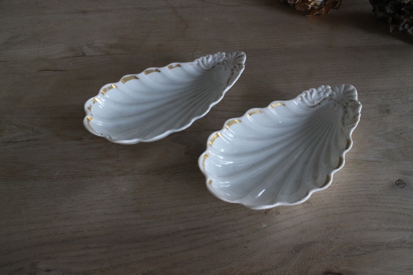 フランスの前菜用のお皿、シェルのかたちのラヴィエ(オーバルプレート)です。シェルのかたちのラヴィエは、とても人気があります。シンプルで洗練されたデザインは、どんな料理も引き立てて食卓をオシャレに演出してくれくれます。フレンチカフェのような雰囲気を演出したい方におすすめの一枚です。特別な日の食事から、普段使いまで、食卓に華を添えてくれる存在です。アンティーク特有の金彩の剝れや細かい傷などはございますが、ヒビや欠けはございません。