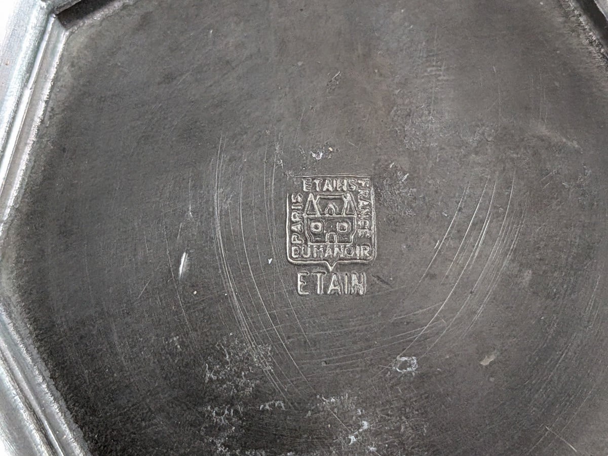 フランスパリで1959年創業のManoir社のエタンで出来たフロッグベースと呼ばれる花瓶です。蛙の卵のような見た目からでしょうか、多数の穴のところに植物を挿すタイプの花器をそう呼びます。穴が開いたガラスが嵌められたフラワーベースです。裏側にManoir社の刻印がございます。蜂の巣のようなガラスの穴に水を入れて、切り花やグリーンを差し込めば簡単にアレンジが作れます。そのまま置いてあるだけでも存在感があります。アンティーク特有の細かい傷はございますが、ヒビや欠けはございません。