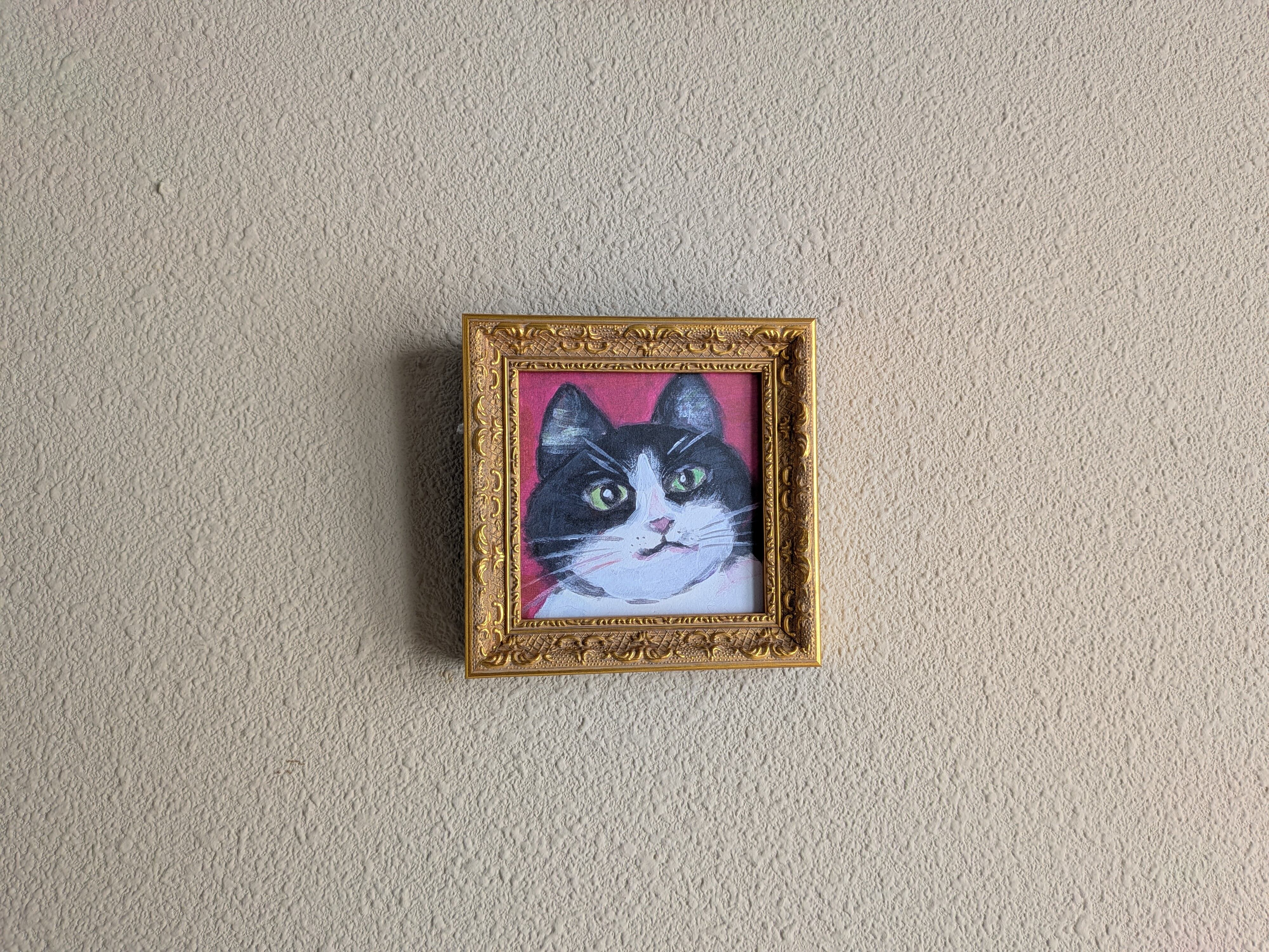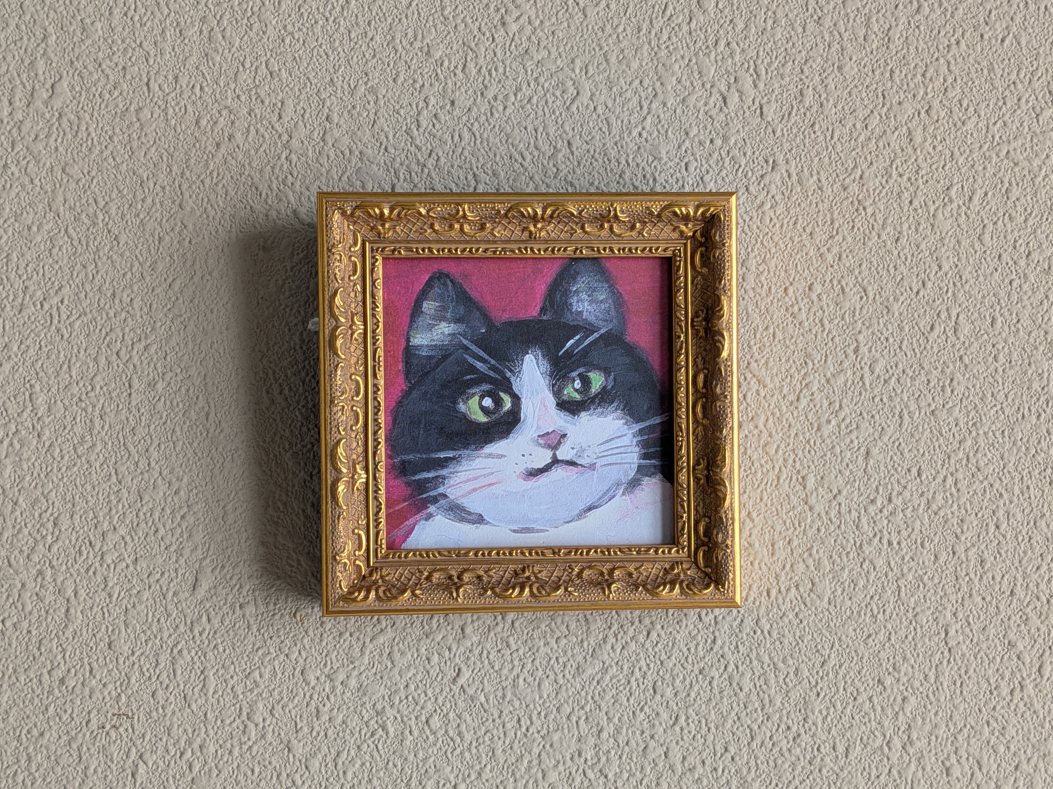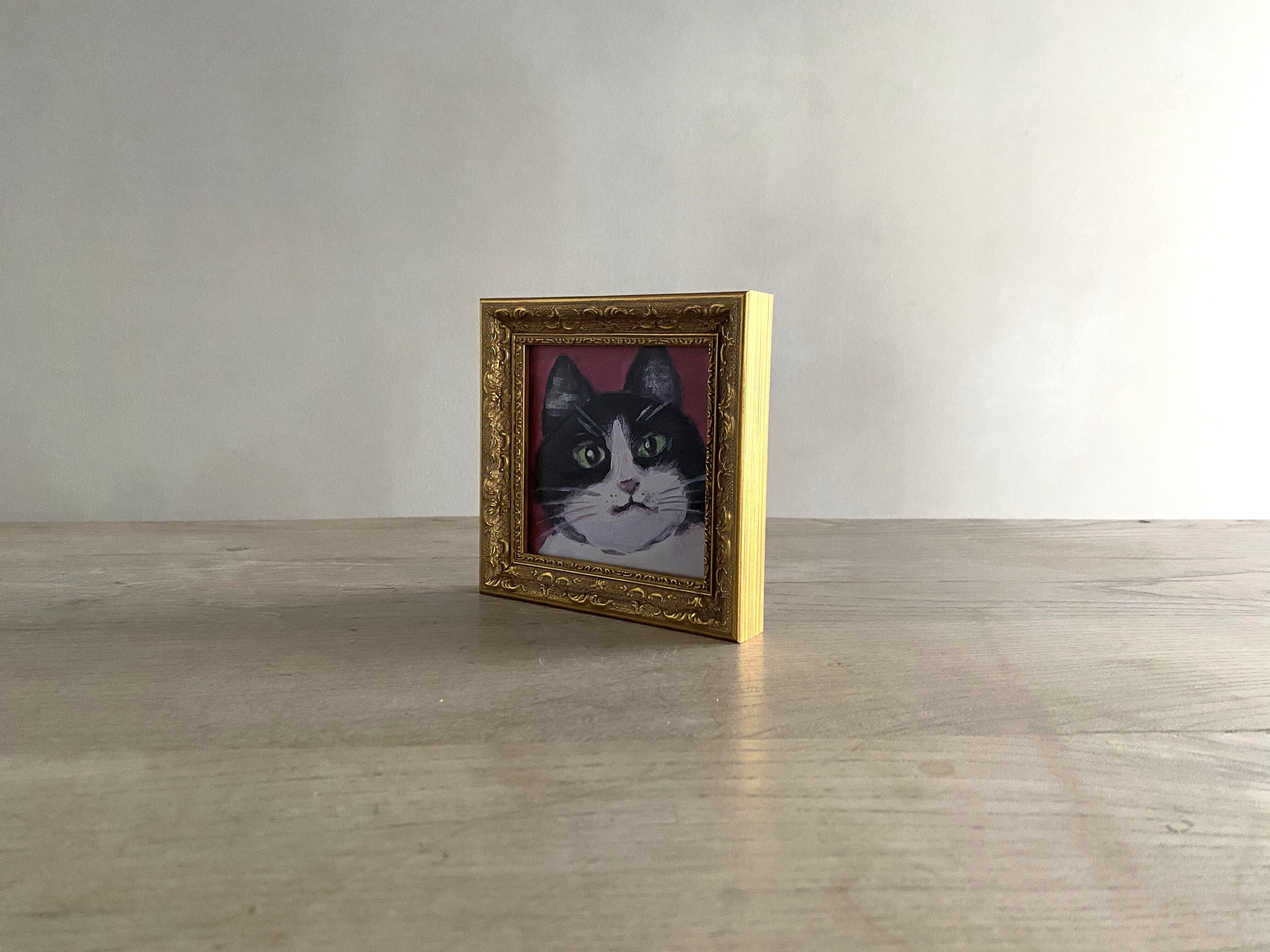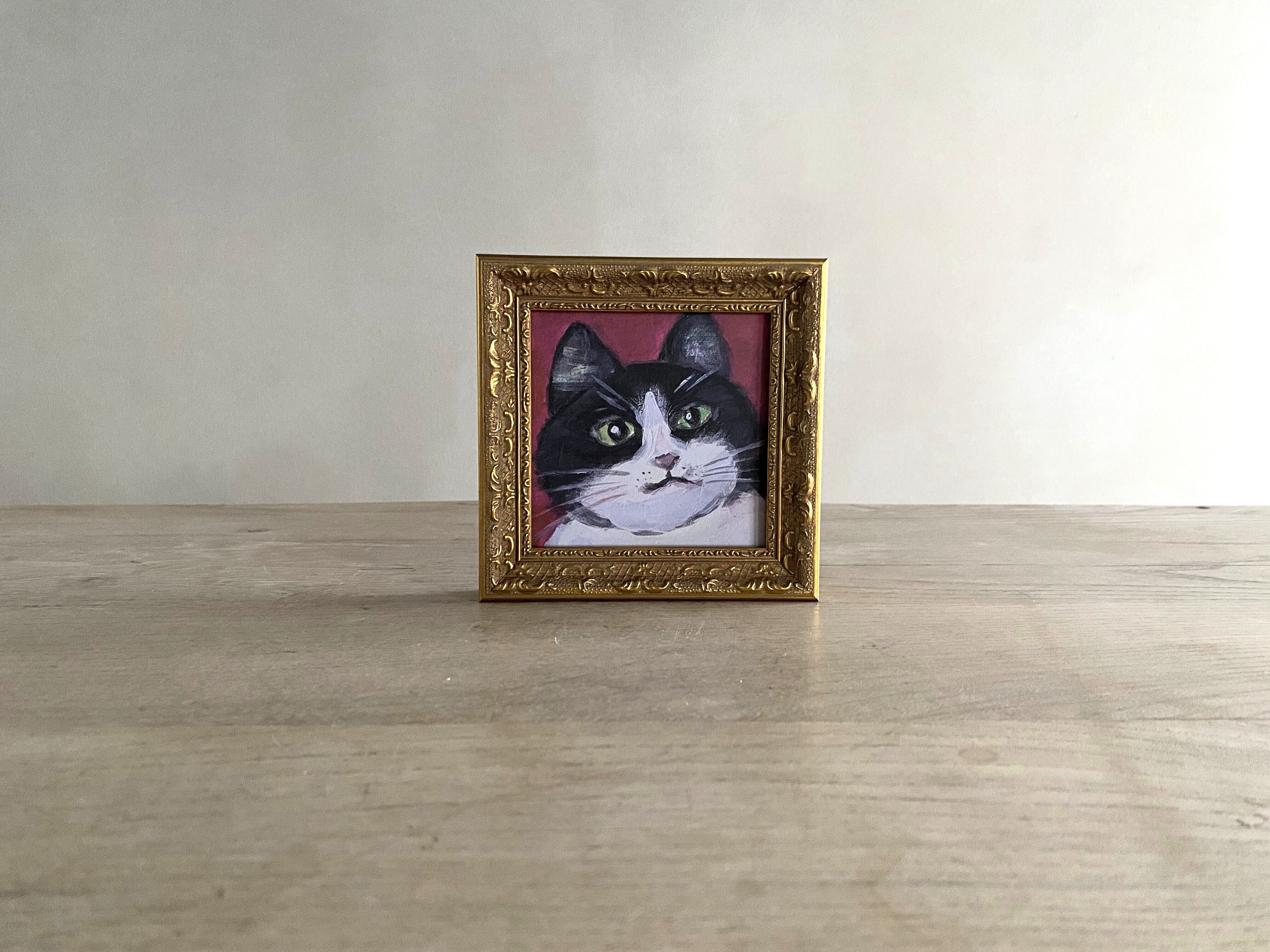 カード入り壁掛けミニフレーム 正方形 GOLD  猫『ハチ』