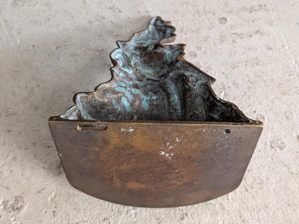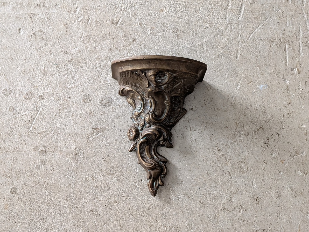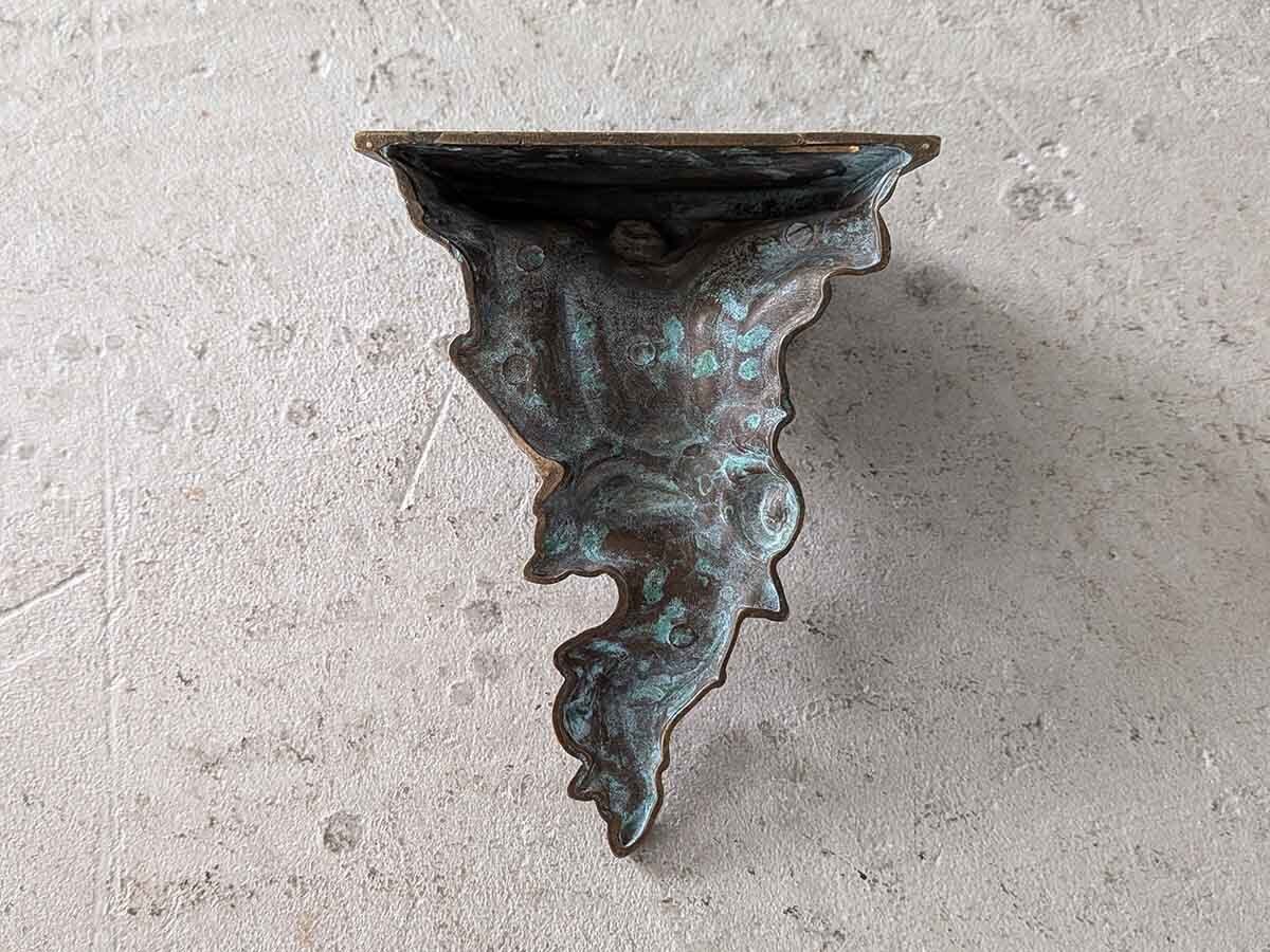 フランスでみつけたブロンズのロココなウォールブラケットです。ロカイユがモチーフの華やかなデザインで、時を経た落ち着いた色が魅力的で壁に飾るだけで雰囲気が変わります。小さな棚としてお気に入りの小物を飾っても良いですね。