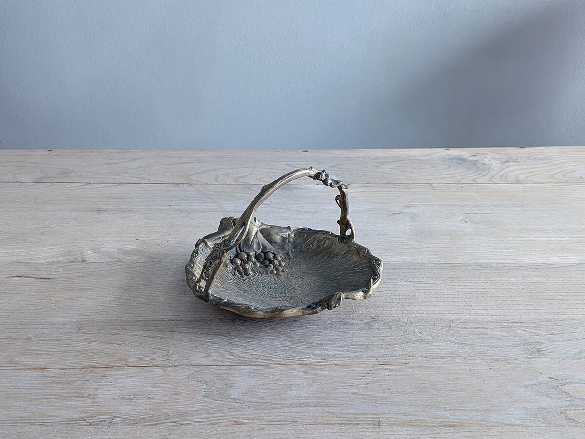 フランス 葡萄柄バスケットのブロンズトレイ 7755
