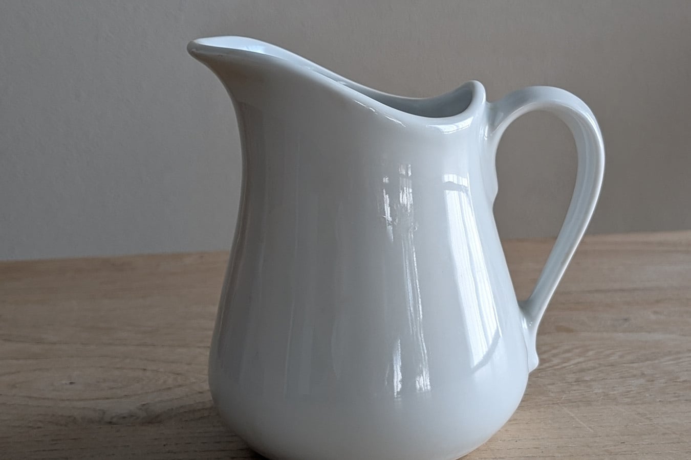 白い陶器の小さなピシェ(ポタリージャグ)です。ぽってりとしたフォルムに流れるような曲線が可憐な印象です。置いてあるだけで絵になる白いピシェですが、グリーンやドライフラワーなどを挿すと更に雰囲気が出ます。アンティーク特有の細かい傷がございますが、比較的良い状態です。ぽってりとした風合いや少し歪な雰囲気も古いものの味わいとして楽しんでいただきたいです。
