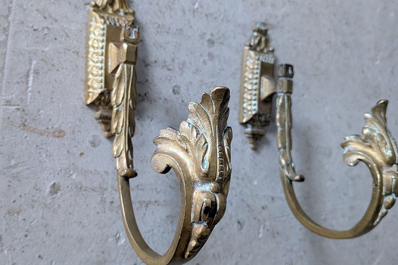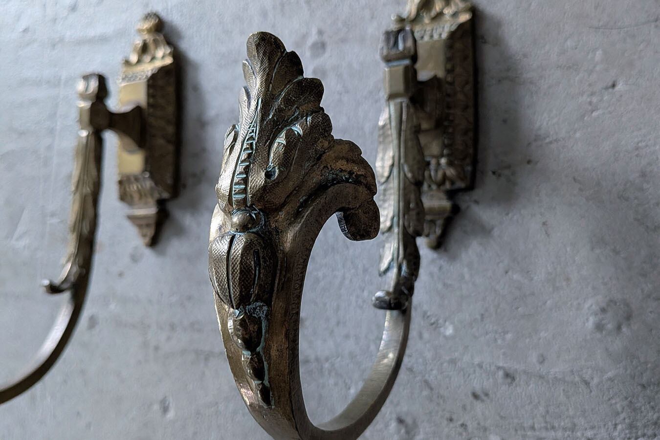 アカンサスモチーフのデザインが高貴な印象の1890年頃のフランス製ブロンズフックです。こだわりのあるパーツは、優雅で魅力的な空間が演出できます。価格は一つのお値段です。