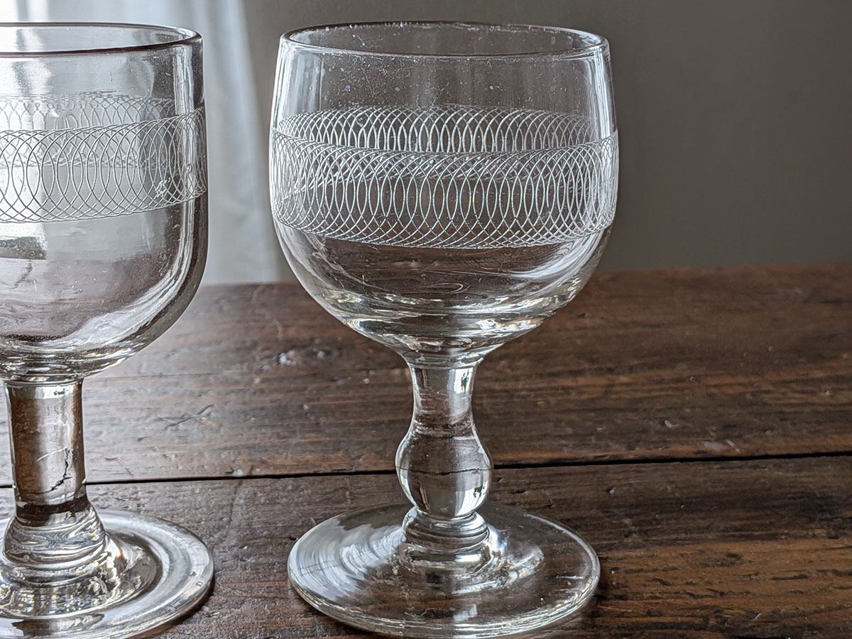 フランス 吹きガラスのステム付きワイングラス 7813(写真右側)