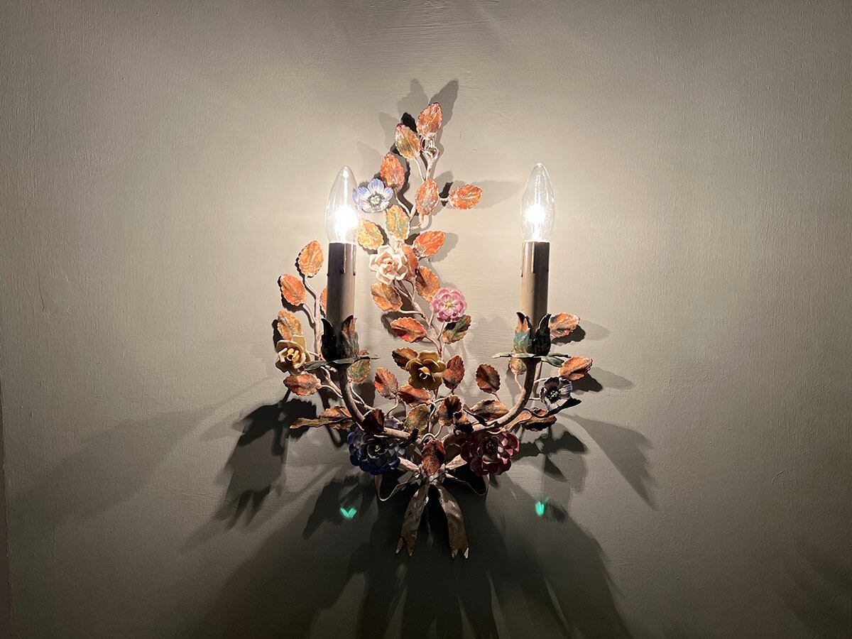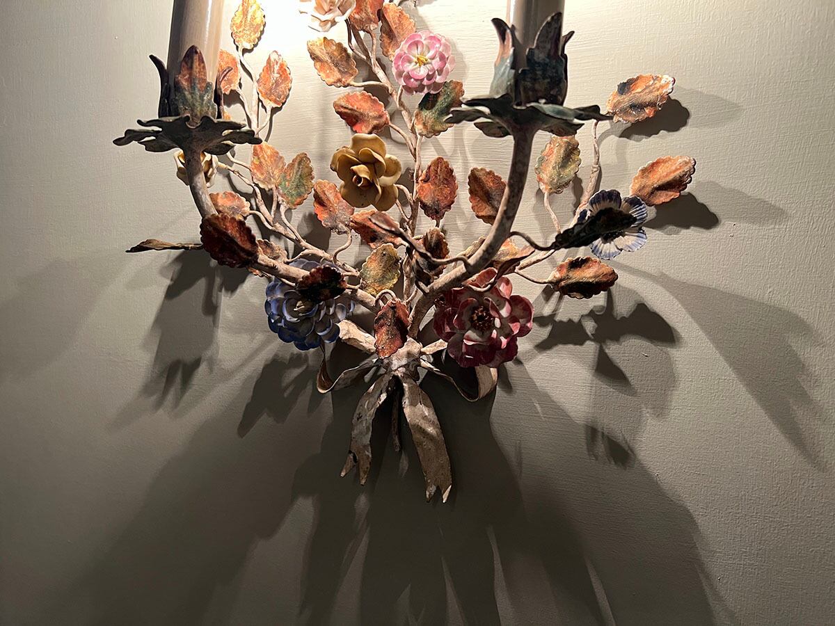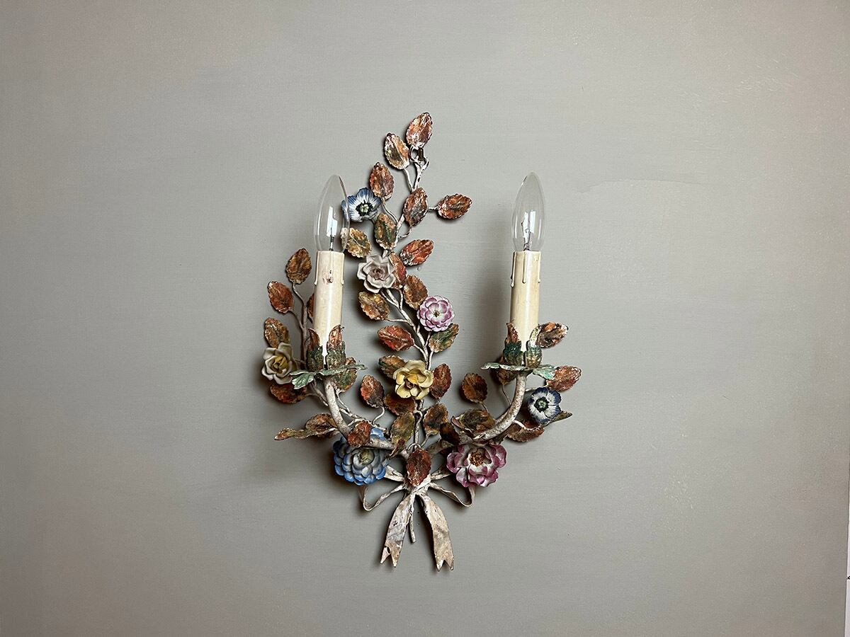 フランス 花の装飾が可愛らしいペインテッドアイアンウォールブラケットランプ 7901_01