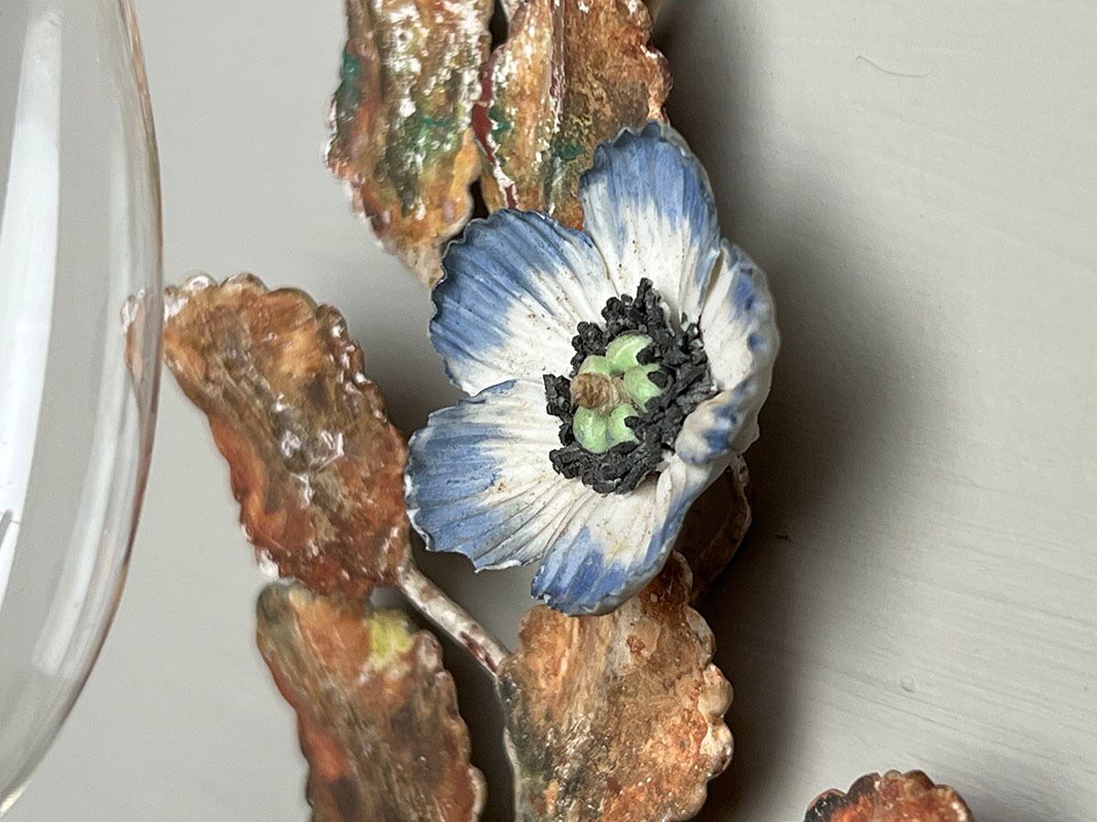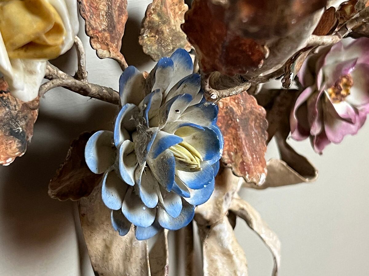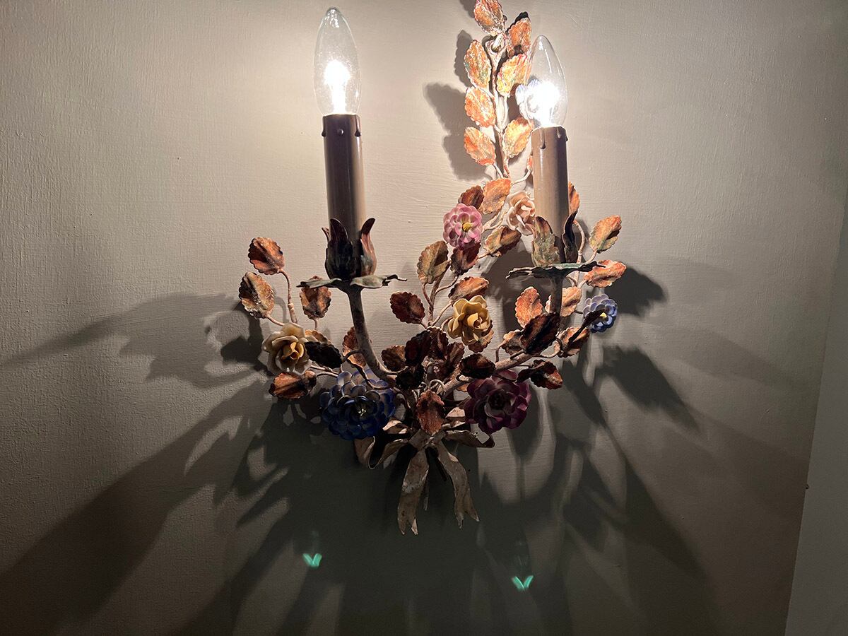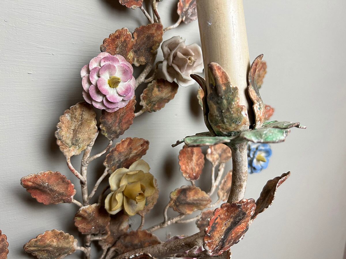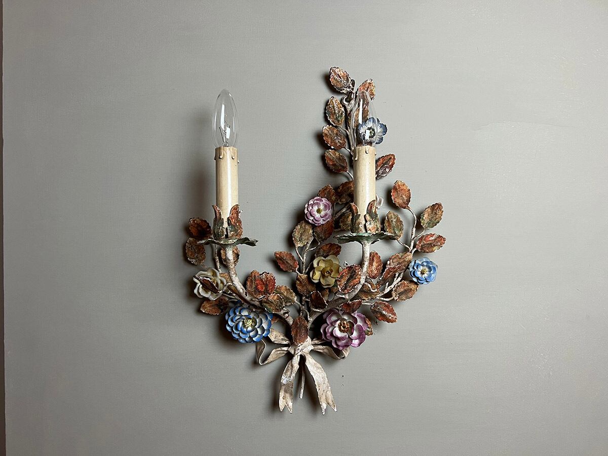 フランス 花の装飾が可愛らしいペインテッドアイアンウォールブラケットランプ 7901_02