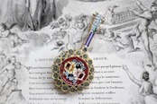 イタリア製のマイクロモザイクブローチです。細かいモザイクガラスが嵌め込まれたマイクロ(ローマン)モザイクは18世紀から続く伝統工芸です。緻密なモザイクガラスのいろいろな色の組み合わせによって作られる柄がとても魅力的です。18世紀から19世紀にイギリス貴族たちの高級土産品として流行りました。現在では世界にコレクターも多く腕利きの職人による繊細なものは美術工芸品として高額で取引されています。アンティーク特有の細かい傷がございますが、新しいものには無い年月を経て刻まれた奥深い味わいとして感じて頂きたいです。