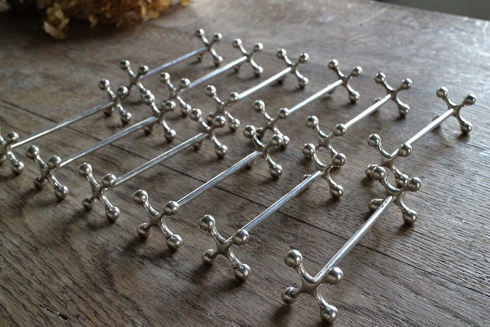 フランスの蚤の市で見つけたカトラリーレストです。刻印がありますが擦れて読み取ることが出来ません。価格は一つのお値段です。アンティーク特有の細かい傷がございますが、アンティークとしては綺麗な状態です。
