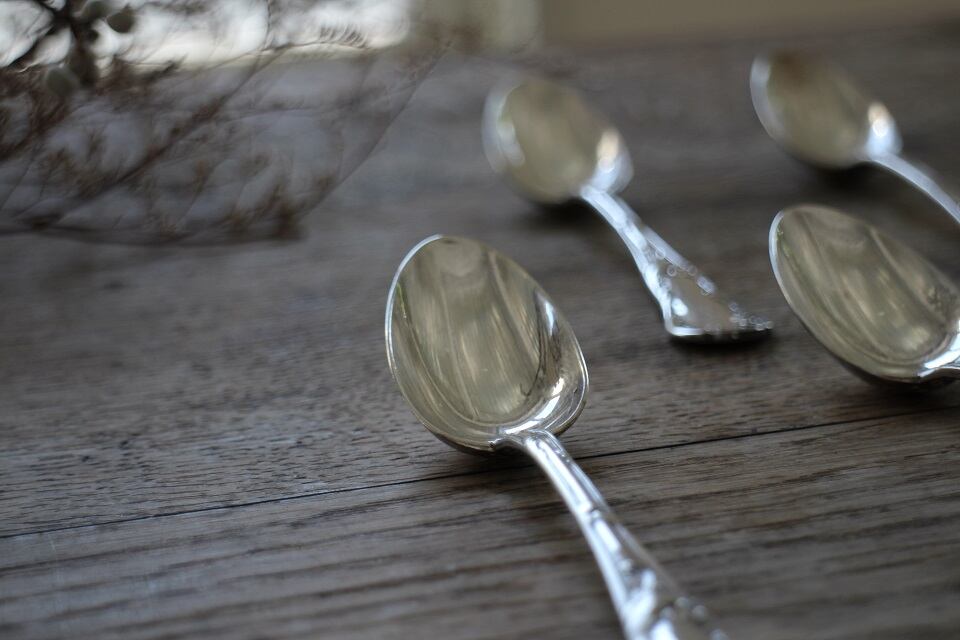 クリストフルのシルバープレーテッドティースプーンです。ルイ15世様式の模様にアカンサスや菊がデザインされたクラシカルな雰囲気のスプーンです。銀のメッキを施したことを意味するCCマークと「CHRISTOFLE」のロゴが刻印されています。アンティーク特有の細かい傷はございますが、ヒビや欠けはございません。