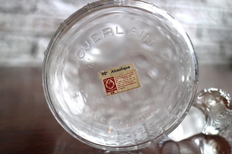 1828年パリで誕生した『ゲラン』のオーデコロンボトルです。こちらはナポレオンの紋章でもある蜂をモチーフにしたデザインでビーボトルと呼ばれています。現在でも作られている『du COQ』という香水のボトルでで、フランスの象徴である雄鶏が描かれたラベルです。アンティーク特有の細かい傷はございますが、ヒビや欠けもなくとても綺麗な状態です。