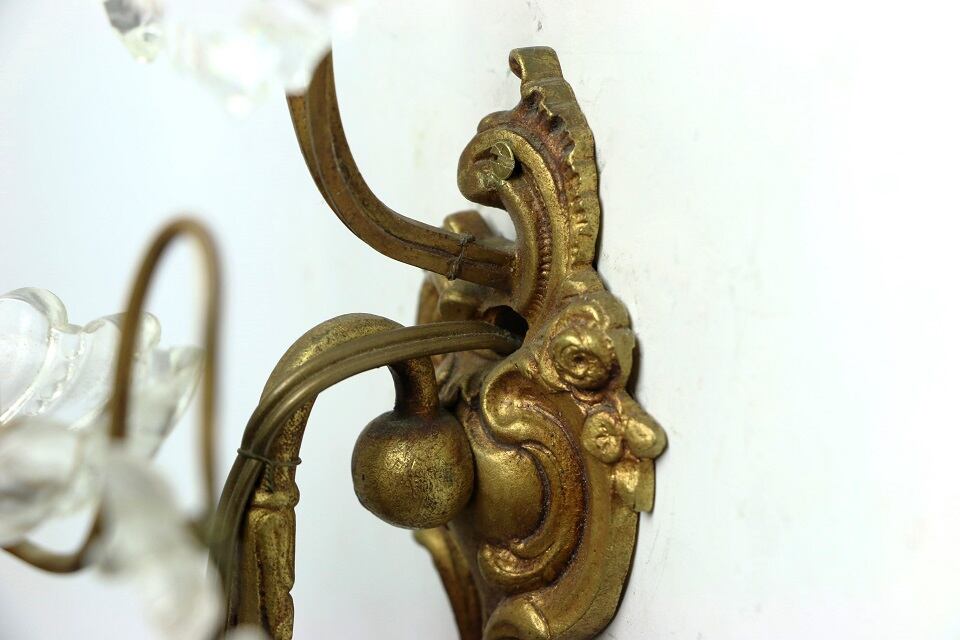 クリスタルドロップが揺れるフランスの1灯式ウォールランプです。ロココなゴールド色のベースにドロップがゆらゆら揺れて優雅な佇まいです。小ぶりなので玄関や柱、壁のアクセントにいかがでしょうか?ご希望があれば、配線コードを延長したりコンセントを取付けできますので、お問合せ下さい。