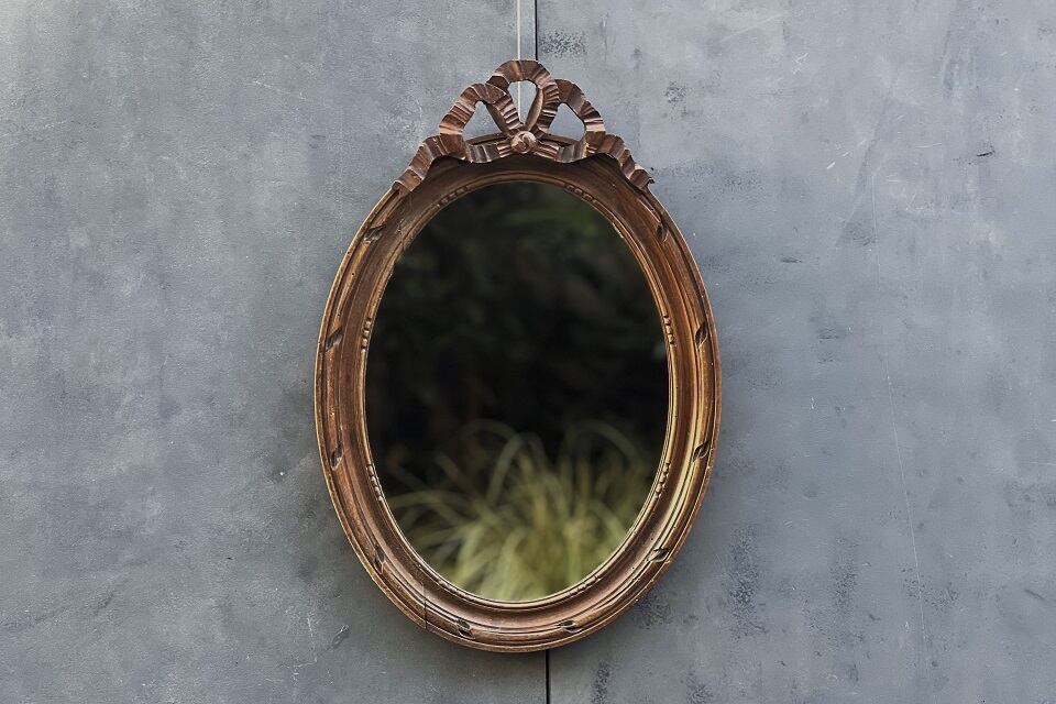 フランス リボンモチーフのウッデンオーバルミラー 5996_01_YA