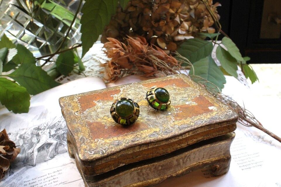 グリーンのガラスに金彩が施されたイヤリング 663901_LP