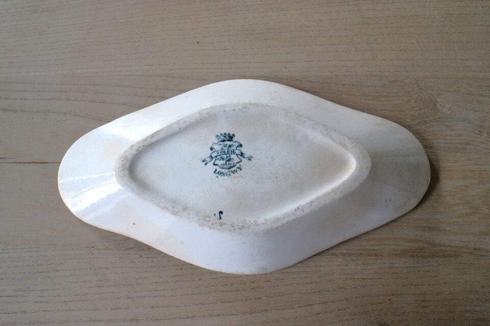フランスのLONGWY(ロンウィ)窯の前菜用のお皿、ラヴィエ(オーバルプレート)です。LONGWY(ロンウィ)窯はフランスの陶器の盛んなロレーヌ地方で1798年創業した老舗の窯です。独特な形状は、食卓をオシャレに演出してくれます。可愛らしい花の柄が描かれたシンプルで洗練されたデザインは、どんな料理も引き立ててくれます。フレンチカフェのような雰囲気を演出したい方におすすめの一枚です。特別な日の食事から、普段使いまで、食卓に華を添えてくれる存在です。アンティーク特有の細かい傷などはございますが、ヒビや欠けはございません。