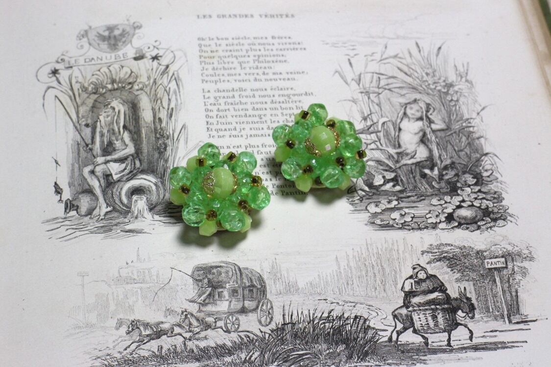 『Western Germany』や『West Germany』の刻印は、西ドイツと呼ばれていた1949年からベルリンの壁崩壊後の1990年代頃までのものといえます。こちらはレトロな印象のグリーンビーズが可愛らしいヴィンテージイヤリングです。